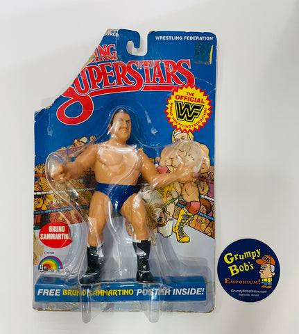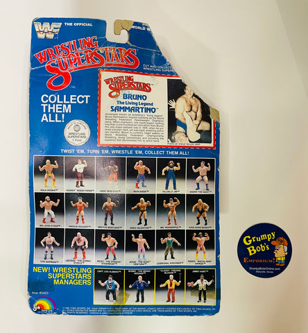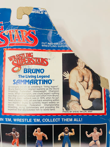 1985 / LJN Toys, Ltd. / Titan Sports / WWF / Asst. #5423 / Wrestling Superstars / BRUNO SAMMARTINO / New on Damaged / Torn / Taped Card / SEE Pictures