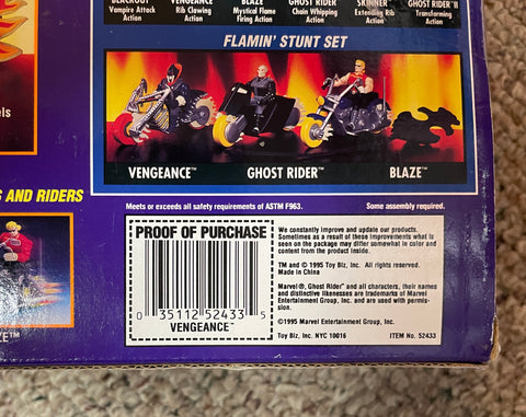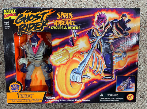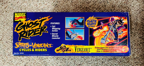 1995 / Toy Biz / Marvel Comics GHOST RIDER SPIRITS OF VENGEANCE / Cycles & Riders / Includes "VENGEANCE" Action Figure and "Steel Skeleton Cycle" / Item #52433 / New in Box / Box has Some Wear / Bumped Corners / See Pictures